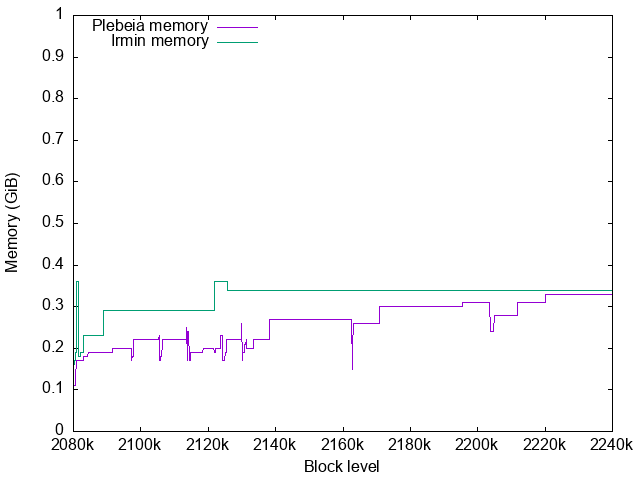 Plebeia’s RSS is shown in green here. Purple is $RSS - virtual\ shared\ memory$.